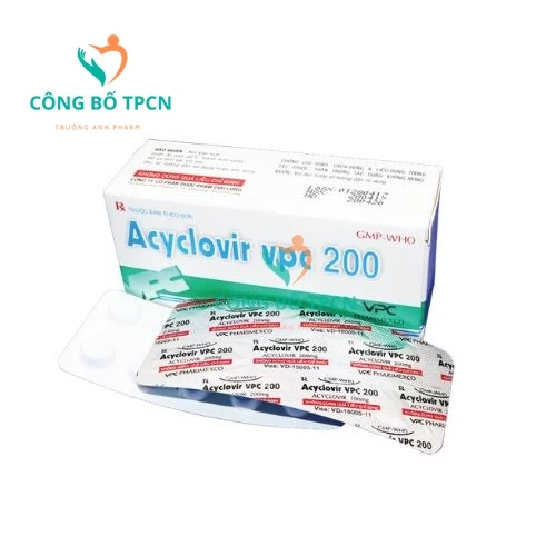 - Acyclovir VPC 200 Pharimexco là thuốc kháng virus dạng uống, được sản xuất bởi Công ty Cổ phần Dược phẩm Cửu Long theo quy trình kiểm soát nghiêm ngặt, đảm bảo chất lượng và độ ổn định trong điều trị. Thuốc được chỉ định trong điều trị các nhiễm trùng do virus Herpes simplex (HSV) ở da và niêm mạc, bao gồm cả những đợt bùng phát đầu tiên và các lần tái phát của herpes sinh dục. Acyclovir VPC 200 cũng được sử dụng để phòng ngừa tái phát ở bệnh nhân suy giảm miễn dịch và điều trị các trường hợp zona thần kinh (herpes zoster). Với khả năng hấp thu tốt qua đường uống, thuốc mang lại tác dụng ổn định trong kiểm soát và ức chế sự phát triển của virus trong cơ thể.