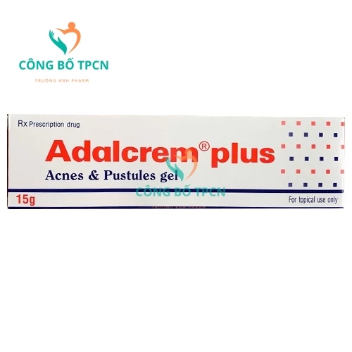 - Adalcrem Plus 15g Phil Inter Pharma là thuốc điều trị mụn trứng cá dạng kem bôi ngoài da, được bào chế đặc biệt để kiểm soát các thể mụn viêm, mụn có nhân và mụn mủ xuất hiện ở vùng mặt, ngực và lưng. Thuốc chứa hai hoạt chất phối hợp: Adapalen – dẫn xuất retinoid giúp điều hòa quá trình keratin hóa tại các nang lông, hạn chế hình thành nhân mụn mới; và Clindamycin – kháng sinh có tác dụng ức chế vi khuẩn gây viêm, từ đó giảm tình trạng sưng đỏ và mụn viêm lan rộng. Adalcrem Plus 15g thích hợp sử dụng cho cả thanh thiếu niên và người lớn, với liều bôi 1–2 lần mỗi ngày lên vùng da sạch và khô. Thời điểm tối ưu để sử dụng là vào buổi tối trước khi đi ngủ, giúp các hoạt chất phát huy tác dụng trong suốt thời gian nghỉ ngơi của da.