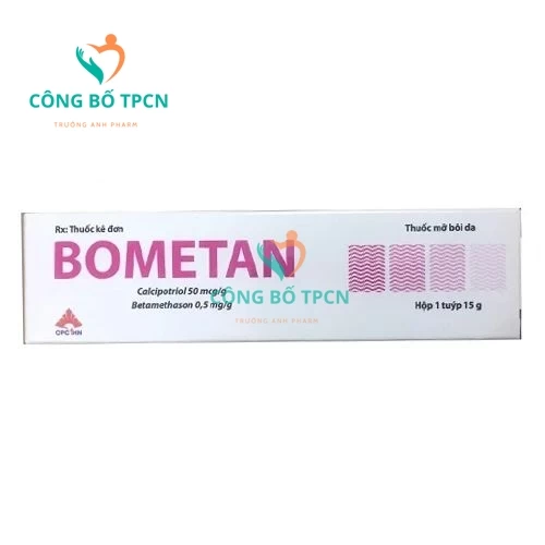 Bometan 15g CPC1HN với thành phần chính Cacipotriol kết hợp với Betamethason có tác dụng ức chế sự phát triển của các tế bào da thuốc được chỉ định điều trị bệnh vẩy nến hiệu quả. Ngoài ra Thuốc bometan còn giúp chống viêm, chống dị ứng và chống thấp khớp trong một số các trường hợp bệnh về da.