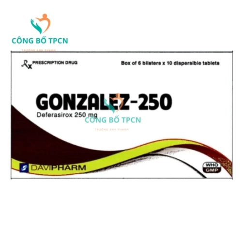 Gonzalez-250 là một trong những loại thuốc được điều chế dưới dạng viên nén và có thành phần là Deferasirox 250mg. Thuốc Gonzalez-250 hiện nay đang được rất nhiều người bệnh tin dùng bởi công dụng điều trị nhiễm độc sắt mãn tính rất hiệu quả